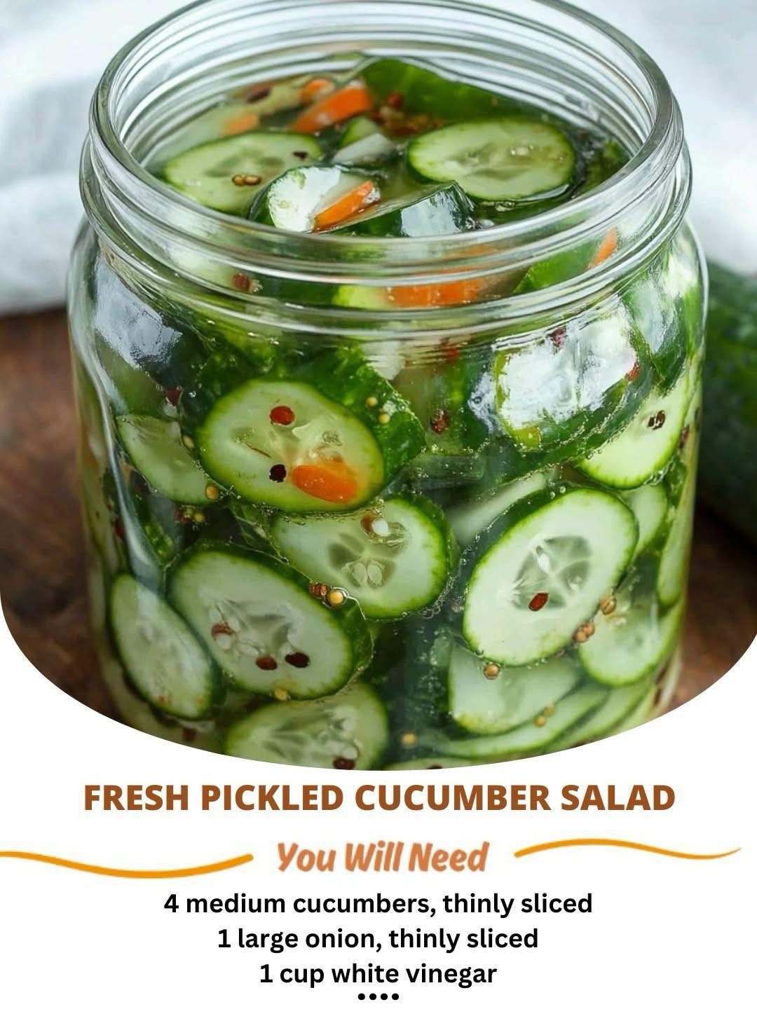 Crisp, tangy, and subtly sweet — this Fresh Pickled Cucumber Salad is the kind of snack you’ll keep going back to. It’s ridiculously easy to make with just a few pantry staples and keeps for up to two months in the fridge (though it rarely lasts that long!). Perfect as a side for grilled meats, tossed into sandwiches, or eaten straight from the jar with a fork.